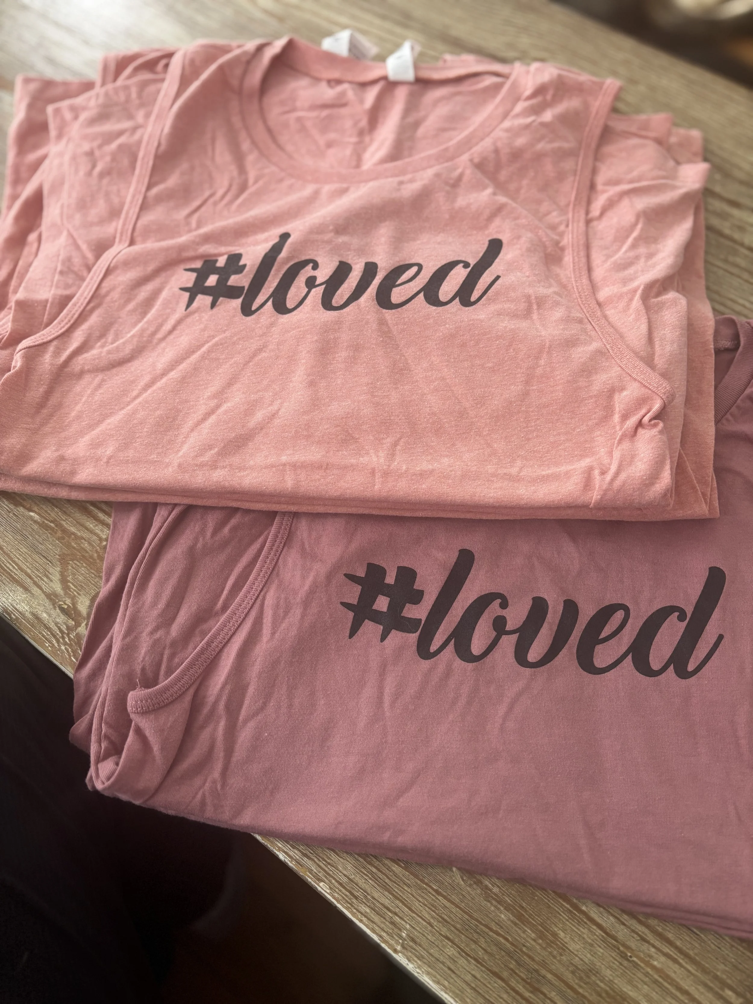 #loved Tank, logo on back - Muscle style tank, Sizes available(Mauve-S. Peach-S, M, XL)